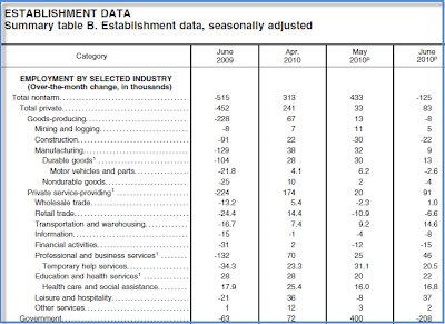 Please consider the Bureau of Labor Statistics (BLS) June 2010 Employment Report.
