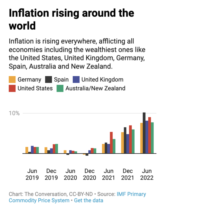 It might seem like U.S. policies brought on this predicament, but economists like me doubt it because inflation is spiking everywhere, with few exceptions. Rates averaged 9.65% in the 38 largely wealthy countries that belong to the Organization for Economic Cooperation and Development through May 2022.