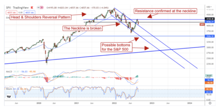 No one can say with 100% certainty that the S&P 500 (NYSEARCA:SPY) is about to crash but, technically speaking, the S&P 500 just flashed a significant signal and isn’t a good one. Those of you who follow my index coverage or read the Weekly Preview know I have been targeting the end of October/early portion of November as the next time to expect an excellent signal but I was wrong. That signal came last week, over the last two weeks actually, when the S&P 500 confirmed resistance at the 4,100-4,300 range. This range is coincident with the neckline of a Head & Shoulders Reversal Pattern and the 5.8% fall from it is a confirmation of the pattern. That’s not good news. The pattern took a year to form and 4 months to confirm so it looks like we’re facing at least 4 months of selling with a potential for 12 months or more over the long term.