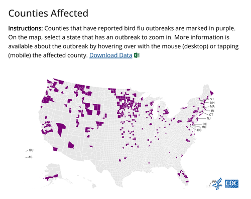 Readers have been well-informed this year about the devastating bird flu outbreak ravaging commercial poultry farms nationwide. Here’s the latest map of the epidemic spreading across the US.