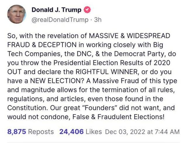 HomeMarkets Markets Lincoln Project slams GOP leaders for silence after Donald Trump demands ‘termination’ of election laws, Constitution By news December 5, 2022 0 134 FacebookTwitterPinterestWhatsApp It’s been more than a day since former President Donald Trump demanded the “termination” of “all rules” dictating election law, including those in the …This post was originally published on this site Share FacebookTwitterPinterestWhatsApp Subscribe Login Notify of new follow-up comments new replies to my comments Please login to comment 0 Comments Inline Feedbacks View all comments Stay Connected149,186FansLike396,312FollowersFollow2,680SubscribersSubscribe Latest Articles Markets American soldier arrested over Polymarket wagers tied to Maduro’s capture Markets Why the world’s banks are so worried about Anthropic’s latest AI model Markets I Flagged Every Trade Markets ‘Should’ve Never Sold Her Soul!’ Markets Thursday Thoughts – The Circle Jerk Economy is Back in Full Swing Market News On the Brink of Global Recession Energy Iran Again Tightens Its Grip on Shipping in the Strait of Hormuz Biotech HHS rejects publication of study showing Covid-19 vaccines prevent hospitalizations, ER visits Markets (Plunder) America First: The Grand Strategy of Donald Trump Markets Is Trump heading to a Pyrrhic victory in Iran? Markets Which Way Wednesday – The Physics of Oil Won’t Negotiate Market News Why the US military is stuck using $1 million missiles against Iran’s $20,000 drones AI Unauthorized group has gained access to Anthropic’s exclusive cyber tool Mythos, report claims AI Apple’s John Ternus will run one of the world’s most powerful companies; the job is a minefield Load more