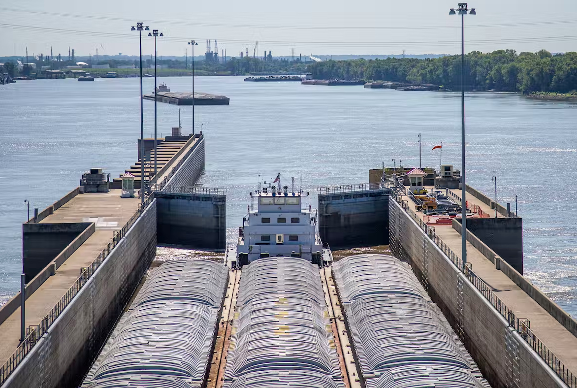 The Mississippi River is a key waterway for moving grain by barge from farm states to domestic and export markets. Barges are the least expensive and most sustainable option for commercial shipping.