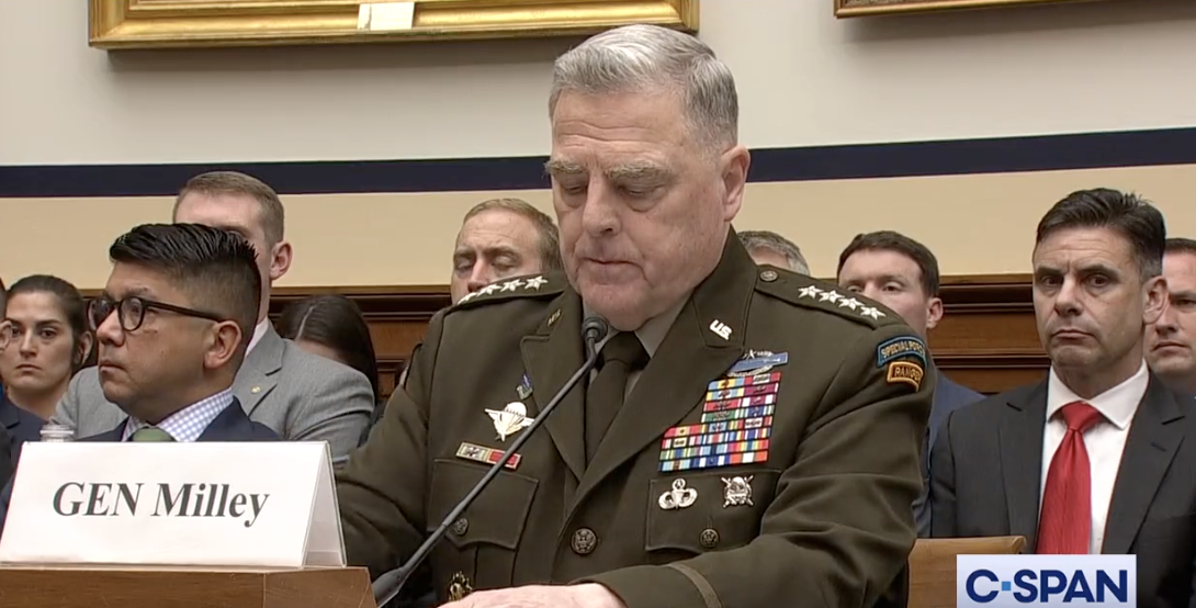 .@thejointstaff Chair Gen. Mark Milley: “Iran could produce enough fissile material for a nuclear weapon in less than two weeks, and it would only take several more months to produce an actual nuclear weapon.” pic.twitter.com/DZijgSUcXW