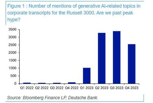 If The Information’s reporting is correct, then it’s more supportive evidence the AI hype bubble is fading. Last month, Deutsche Bank’s head of thematic research, Jim Reid, pointed out in a note to clients that artificial topics mentioned on Russell 3000 earnings transcripts peaked in the third quarter.