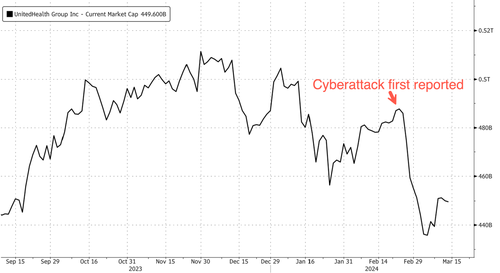 UnitedHealth’s market capitalization has lost about 39 billion dollars since the attack was first reported late last month. Its current market cap stands at around 449 billion dollars.