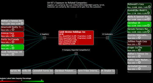 According to Bloomberg supply chain data, Lamb Weston is a major french fry supplier for McDonald’s, deriving about 13% of its revenue from the fast food giant.