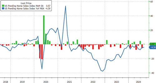 Despite tumbling mortgage rates and surging mortgage applications, pending home sales in the US rose just 0.6% MoM in August (less than the 1.0% MoM expected jump back from the 5.5% plunge in July).