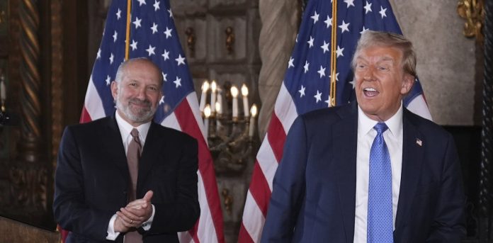 Howard Lutnick, left, is President Donald Trump’s nominee to run the Commerce Department. AP Photo/Evan Vucci