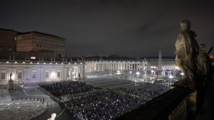 ROME (AP) — Pope Francis remained in critical condition Monday but showed slight improvement in laboratory tests and resumed some work, the Vatican said, including calling a parish in Gaza City that he has kept in touch with since the war there began. The Vatican’s evening bulletin was more upbeat …