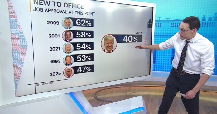 Steve Kornacki joins TODAY to breakdown a new NBC News poll on President Donald Trump’s second term in the White House, more than 50 days since he was sworn in. His job performance is rated as 47% approve while 51% disapprove.