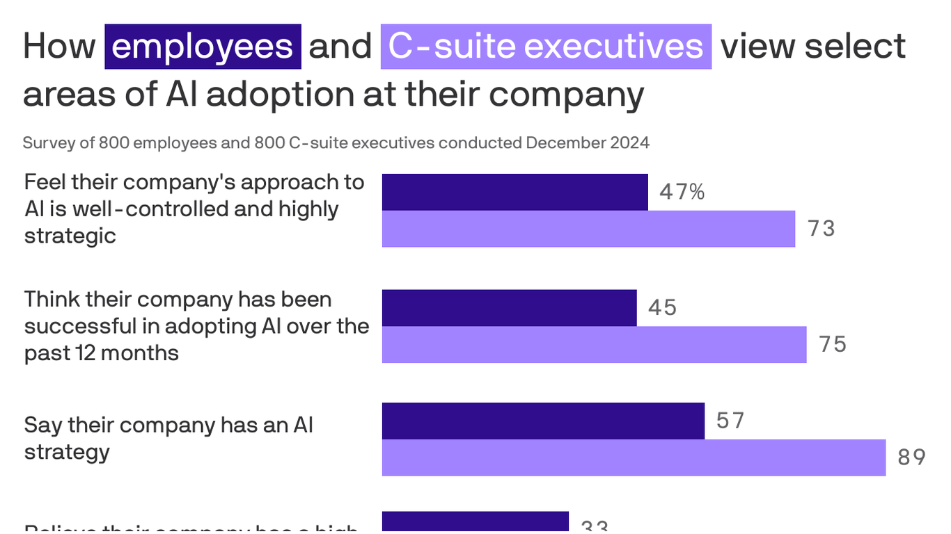 HomeMarkets Markets AI is “tearing apart” companies, survey finds By news March 18, 2025 0 201 FacebookTwitterPinterestWhatsApp AI adoption in the workplace is deepening divisions and sparking new power struggles between leaders and workers, with half of executives saying that …This post was originally published on this site Share FacebookTwitterPinterestWhatsApp Subscribe Login Notify of new follow-up comments new replies to my comments Please login to comment 0 Comments Inline Feedbacks View all comments Stay Connected149,188FansLike396,312FollowersFollow2,680SubscribersSubscribe Latest Articles Markets American soldier arrested over Polymarket wagers tied to Maduro’s capture Markets Why the world’s banks are so worried about Anthropic’s latest AI model Markets I Flagged Every Trade Markets ‘Should’ve Never Sold Her Soul!’ Markets Thursday Thoughts – The Circle Jerk Economy is Back in Full Swing Market News On the Brink of Global Recession Energy Iran Again Tightens Its Grip on Shipping in the Strait of Hormuz Biotech HHS rejects publication of study showing Covid-19 vaccines prevent hospitalizations, ER visits Markets (Plunder) America First: The Grand Strategy of Donald Trump Markets Is Trump heading to a Pyrrhic victory in Iran? Markets Which Way Wednesday – The Physics of Oil Won’t Negotiate Market News Why the US military is stuck using $1 million missiles against Iran’s $20,000 drones AI Unauthorized group has gained access to Anthropic’s exclusive cyber tool Mythos, report claims AI Apple’s John Ternus will run one of the world’s most powerful companies; the job is a minefield Load more