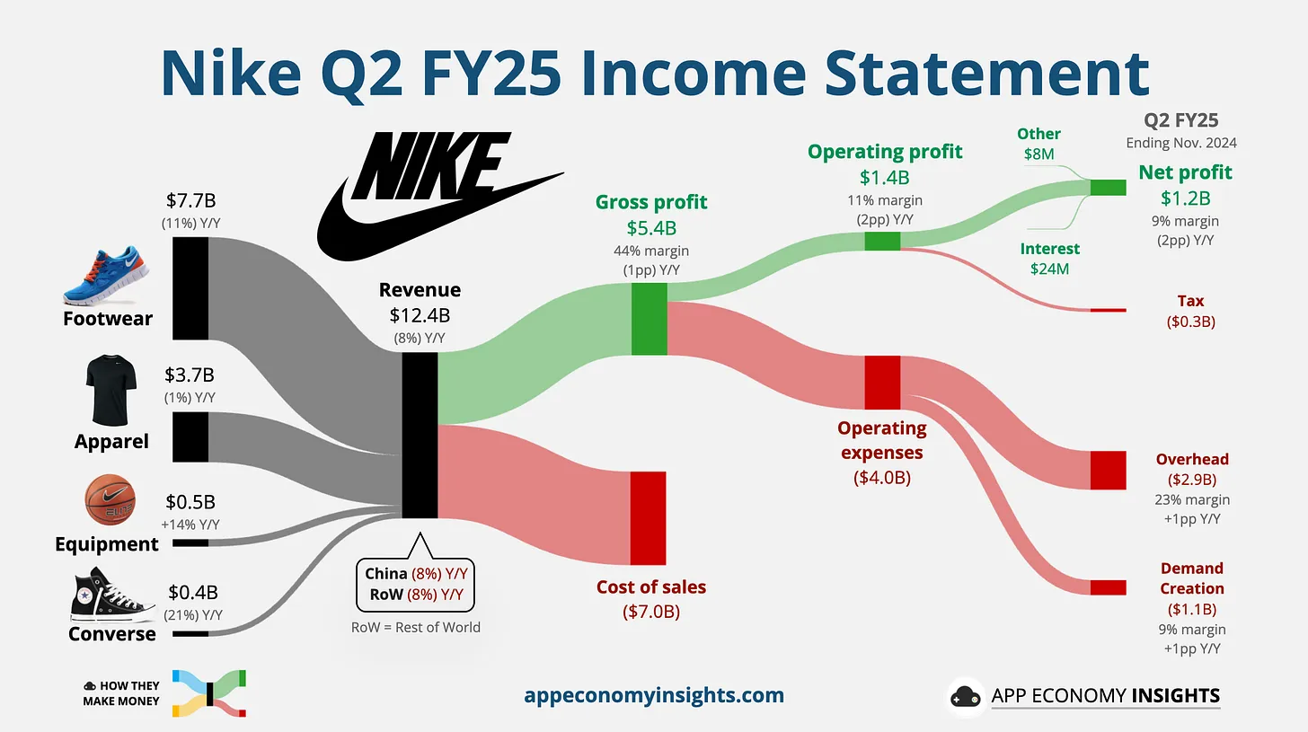 Nike’s lust for direct-to-consumer margins mutated into a Frankenstein monster. By gutting wholesale partners like Foot Locker (FL – where Nike represents 60% of inventory 16), they created a retail wasteland. Consumers walked into empty Foot Lockers and—gasp—bought competitors’ shoes 7 which was, in fact, Phil’s buying premise for FL at the time. Now Hill’s scrambling to rebuild bridges with retailers he torched, but the damage is done: Wholesale revenue fell 7% 1 5, and digital sales collapsed 15% 6 9.