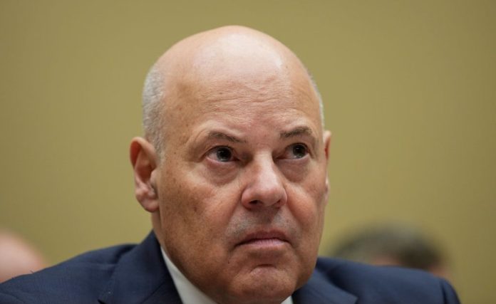 Postmaster General Louis DeJoy Testifies During House Hearing Examining The Delivering For America Plan U.S. Postmaster General Louis DeJoy testifies during a House hearing on Capitol Hill in Washington, DC May 17, 2023.