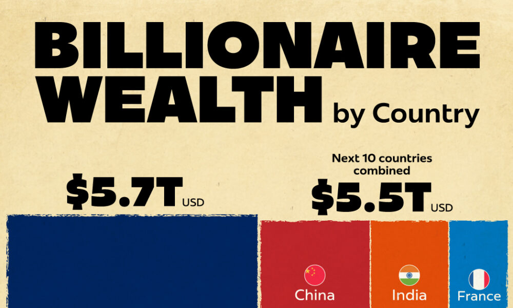 HomeMarkets Markets Ranked: Billionaire Wealth by Country By news March 24, 2025 0 59 FacebookTwitterPinterestWhatsApp Ranked: Billionaire Wealth By Country 2024 As of April 2024, Forbes estimates there are over 2,700 billionaires worldwide, with a combined net worth …This post was originally published on this site Share FacebookTwitterPinterestWhatsApp Subscribe Login Notify of new follow-up comments new replies to my comments Please login to comment 0 Comments Inline Feedbacks View all comments Stay Connected149,188FansLike396,312FollowersFollow2,680SubscribersSubscribe Latest Articles Markets Why the world’s banks are so worried about Anthropic’s latest AI model Markets I Flagged Every Trade Markets Thursday Thoughts – The Circle Jerk Economy is Back in Full Swing Market News On the Brink of Global Recession Energy Iran Again Tightens Its Grip on Shipping in the Strait of Hormuz Biotech HHS rejects publication of study showing Covid-19 vaccines prevent hospitalizations, ER visits Markets (Plunder) America First: The Grand Strategy of Donald Trump Markets Is Trump heading to a Pyrrhic victory in Iran? Markets Which Way Wednesday – The Physics of Oil Won’t Negotiate Market News Why the US military is stuck using $1 million missiles against Iran’s $20,000 drones AI Unauthorized group has gained access to Anthropic’s exclusive cyber tool Mythos, report claims AI Apple’s John Ternus will run one of the world’s most powerful companies; the job is a minefield Energy Trump announces extension of Iran ceasefire until ‘discussion concluded’ Top Trades PhilStockWorld Top Trade Alert – April 21st, 2026 – Synchrony Financial (SYF) Load more