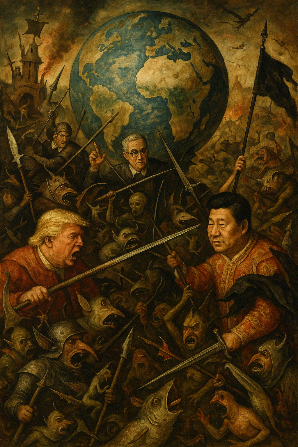 Donald “Tariff Man” Trump: A walking Dunning-Kruger effect with a tanning bed addiction. His economic strategy? Light the global trade system on fire and claim credit for the warmth. He’s the chaos king, swinging tariffs like a drunk cowboy with a shotgun. His goal? Votes and vengeance – not jobs.