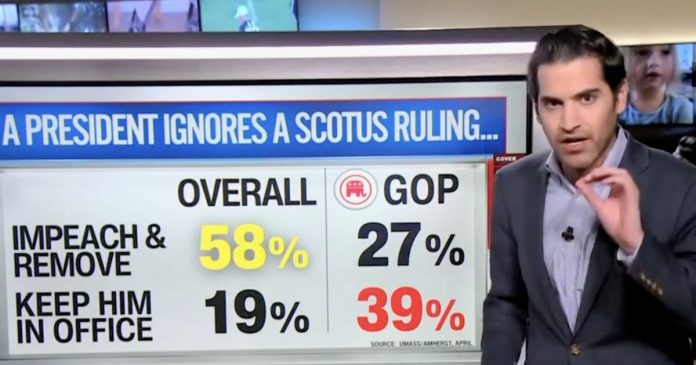 HomeMarkets Markets CNN Data Guru Warns Trump of Danger of Defying Supreme Court By news April 21, 2025 0 254 FacebookTwitterPinterestWhatsApp The percentage of people who think the president should be impeached for ignoring SCOTUS should make him pause, says CNN’s Harry Enten.This post was originally published on this site Share FacebookTwitterPinterestWhatsApp Subscribe Login Notify of new follow-up comments new replies to my comments Please login to comment 0 Comments Inline Feedbacks View all comments Stay Connected149,188FansLike396,312FollowersFollow2,680SubscribersSubscribe Latest Articles Markets American soldier arrested over Polymarket wagers tied to Maduro’s capture Markets Why the world’s banks are so worried about Anthropic’s latest AI model Markets I Flagged Every Trade Markets ‘Should’ve Never Sold Her Soul!’ Markets Thursday Thoughts – The Circle Jerk Economy is Back in Full Swing Market News On the Brink of Global Recession Energy Iran Again Tightens Its Grip on Shipping in the Strait of Hormuz Biotech HHS rejects publication of study showing Covid-19 vaccines prevent hospitalizations, ER visits Markets (Plunder) America First: The Grand Strategy of Donald Trump Markets Is Trump heading to a Pyrrhic victory in Iran? Markets Which Way Wednesday – The Physics of Oil Won’t Negotiate Market News Why the US military is stuck using $1 million missiles against Iran’s $20,000 drones AI Unauthorized group has gained access to Anthropic’s exclusive cyber tool Mythos, report claims AI Apple’s John Ternus will run one of the world’s most powerful companies; the job is a minefield Load more