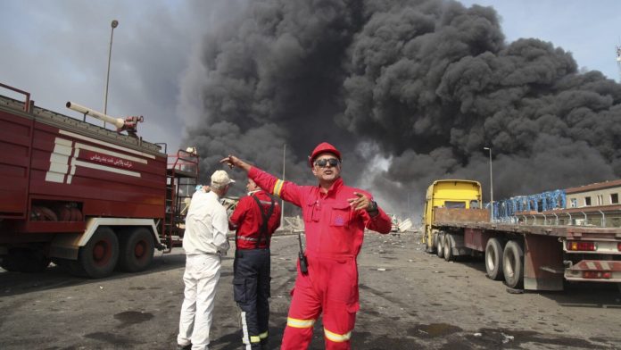 MUSCAT, Oman (AP) — A massive explosion and fire rocked a port Saturday in southern Iran purportedly linked to a shipment of a chemical ingredient used to make missile propellant, killing eight people and injuring around 750 others. Helicopters dumped water from the air on the raging fire hours …