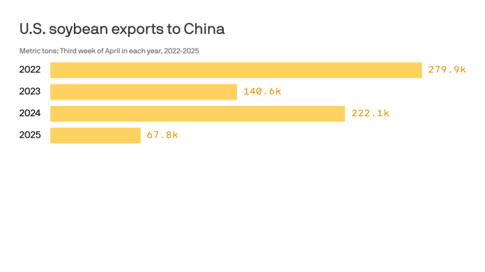 Why it matters: U.S. farmers export more than $176 billion in agricultural products annually — almost 10% of which is just soybean and pork shipments to China.