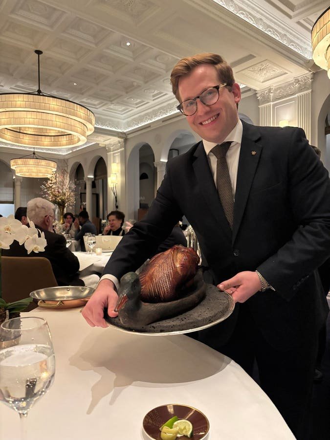 Even though there was much else to see at Restaurant Daniel in New York City last week, all eyes were on the duck. The dining room felt formal and festive: the pale coffered ceiling reflected onto perfectly pressed white tablecloths and white orchid petals. Positioned along the wall, a carefully …
