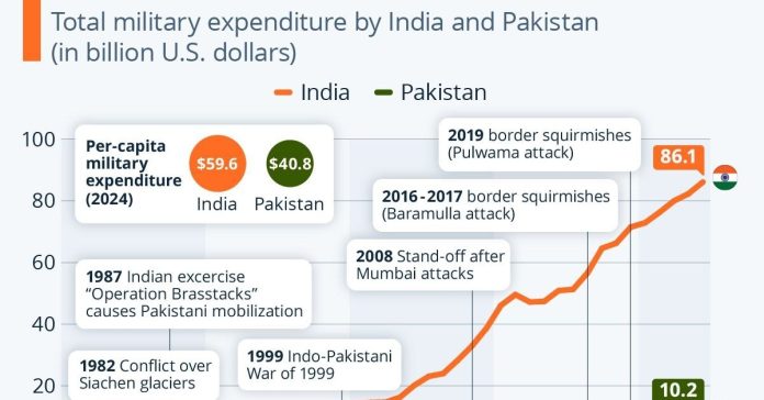 HomeMarkets Markets Visualized: India vs. Pakistan Military Budgets (1980–2024) By news May 9, 2025 0 252 FacebookTwitterPinterestWhatsApp Visualized: India vs. Pakistan Military Budgets Since 1980 On April 22nd, militants opened fire and killed 22 civilians and wounded 17 others near …This post was originally published on this site Share FacebookTwitterPinterestWhatsApp Subscribe Login Notify of new follow-up comments new replies to my comments Please login to comment 0 Comments Inline Feedbacks View all comments Stay Connected149,190FansLike396,312FollowersFollow2,680SubscribersSubscribe Latest Articles Markets Why the world’s banks are so worried about Anthropic’s latest AI model Markets I Flagged Every Trade Markets Thursday Thoughts – The Circle Jerk Economy is Back in Full Swing Market News On the Brink of Global Recession Energy Iran Again Tightens Its Grip on Shipping in the Strait of Hormuz Biotech HHS rejects publication of study showing Covid-19 vaccines prevent hospitalizations, ER visits Markets (Plunder) America First: The Grand Strategy of Donald Trump Markets Is Trump heading to a Pyrrhic victory in Iran? Markets Which Way Wednesday – The Physics of Oil Won’t Negotiate Market News Why the US military is stuck using $1 million missiles against Iran’s $20,000 drones AI Unauthorized group has gained access to Anthropic’s exclusive cyber tool Mythos, report claims AI Apple’s John Ternus will run one of the world’s most powerful companies; the job is a minefield Energy Trump announces extension of Iran ceasefire until ‘discussion concluded’ Top Trades PhilStockWorld Top Trade Alert – April 21st, 2026 – Synchrony Financial (SYF) Load more