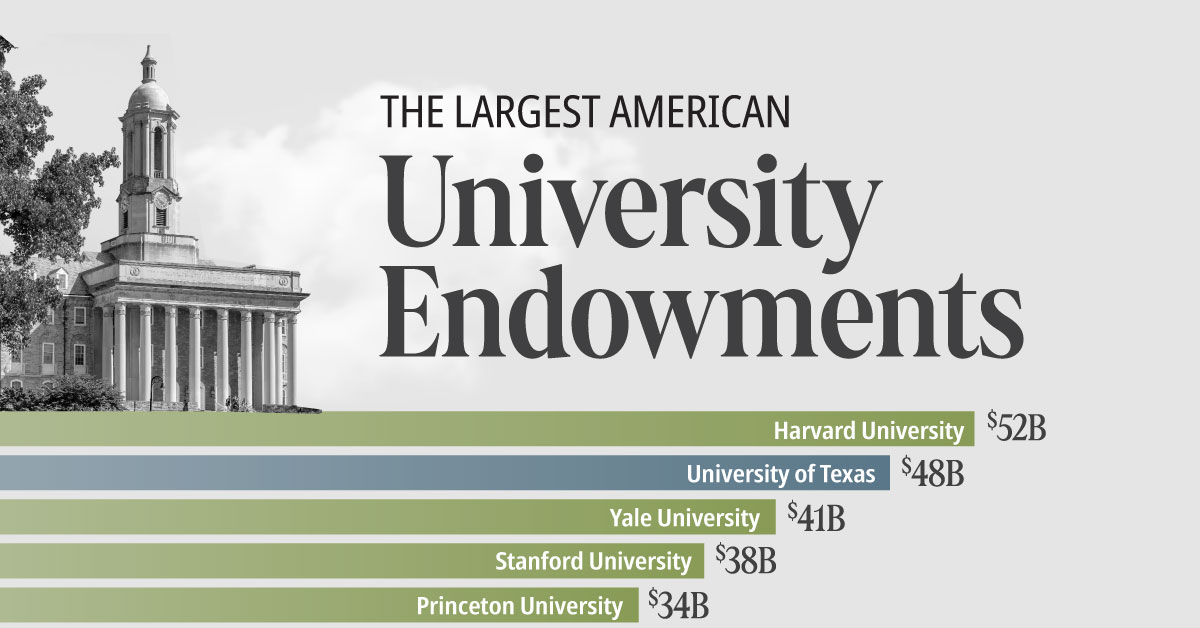 HomeMarkets Markets Ranked: The Largest American University Endowments By news May 14, 2025 0 268 FacebookTwitterPinterestWhatsApp University endowments held more than $870 billion in assets last year, largely dominated by America’s elite institutions. While Harvard, Yale, and …This post was originally published on this site Share FacebookTwitterPinterestWhatsApp Subscribe Login Notify of new follow-up comments new replies to my comments Please login to comment 0 Comments Inline Feedbacks View all comments Stay Connected149,188FansLike396,312FollowersFollow2,680SubscribersSubscribe Latest Articles Markets Why the world’s banks are so worried about Anthropic’s latest AI model Markets I Flagged Every Trade Markets Thursday Thoughts – The Circle Jerk Economy is Back in Full Swing Market News On the Brink of Global Recession Energy Iran Again Tightens Its Grip on Shipping in the Strait of Hormuz Biotech HHS rejects publication of study showing Covid-19 vaccines prevent hospitalizations, ER visits Markets (Plunder) America First: The Grand Strategy of Donald Trump Markets Is Trump heading to a Pyrrhic victory in Iran? Markets Which Way Wednesday – The Physics of Oil Won’t Negotiate Market News Why the US military is stuck using $1 million missiles against Iran’s $20,000 drones AI Unauthorized group has gained access to Anthropic’s exclusive cyber tool Mythos, report claims AI Apple’s John Ternus will run one of the world’s most powerful companies; the job is a minefield Energy Trump announces extension of Iran ceasefire until ‘discussion concluded’ Top Trades PhilStockWorld Top Trade Alert – April 21st, 2026 – Synchrony Financial (SYF) Load more