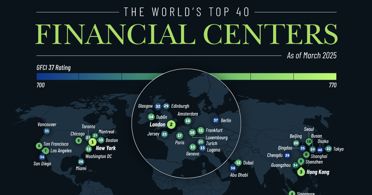 HomeMarkets Markets Mapped: The World’s Top Financial Centers in 2025 By news May 16, 2025 0 291 FacebookTwitterPinterestWhatsApp Financial centers are a core pillar of the modern economy, channeling capital, facilitating trade, and driving innovation across the world. In this …This post was originally published on this site Share FacebookTwitterPinterestWhatsApp Subscribe Login Notify of new follow-up comments new replies to my comments Please login to comment 0 Comments Inline Feedbacks View all comments Stay Connected149,190FansLike396,312FollowersFollow2,680SubscribersSubscribe Latest Articles Markets Why the world’s banks are so worried about Anthropic’s latest AI model Markets I Flagged Every Trade Markets Thursday Thoughts – The Circle Jerk Economy is Back in Full Swing Market News On the Brink of Global Recession Energy Iran Again Tightens Its Grip on Shipping in the Strait of Hormuz Biotech HHS rejects publication of study showing Covid-19 vaccines prevent hospitalizations, ER visits Markets (Plunder) America First: The Grand Strategy of Donald Trump Markets Is Trump heading to a Pyrrhic victory in Iran? Markets Which Way Wednesday – The Physics of Oil Won’t Negotiate Market News Why the US military is stuck using $1 million missiles against Iran’s $20,000 drones AI Unauthorized group has gained access to Anthropic’s exclusive cyber tool Mythos, report claims AI Apple’s John Ternus will run one of the world’s most powerful companies; the job is a minefield Energy Trump announces extension of Iran ceasefire until ‘discussion concluded’ Top Trades PhilStockWorld Top Trade Alert – April 21st, 2026 – Synchrony Financial (SYF) Load more