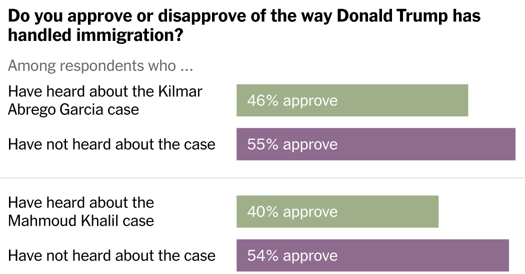Voters were more likely to approve of President Trump’s job performance if they had not been following some of the major news stories of his first 100 days in office, a recent New York Times/Siena College poll found.