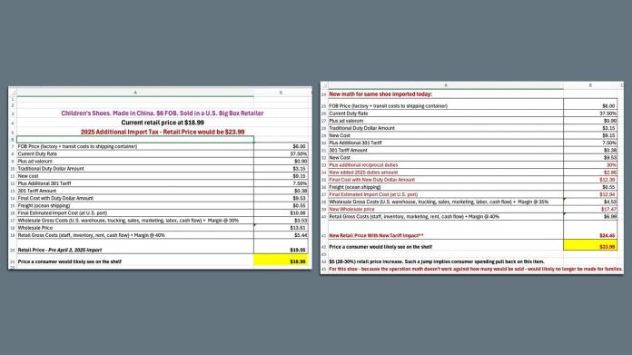 Why it matters: The numbers, an illustrative example produced by a footwear trade association, show that many importers of consumers goods from China can’t make the math work, even after the reduction in tariff rates from 145% to 30%.