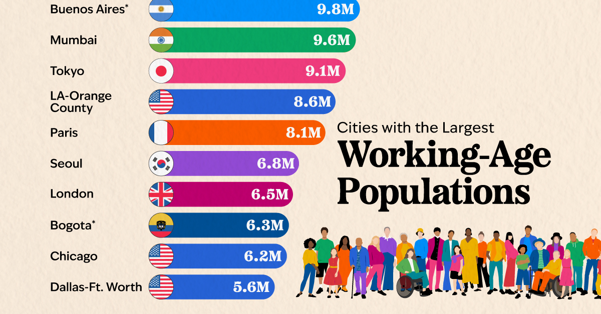 HomeMarkets Markets Charted: Cities with the Largest Working-Age Populations By news June 3, 2025 0 202 FacebookTwitterPinterestWhatsApp As the world becomes increasingly urbanized, cities are transforming into economic engines driven by people of working age, who form the backbones of …This post was originally published on this site Share FacebookTwitterPinterestWhatsApp Subscribe Login Notify of new follow-up comments new replies to my comments Please login to comment 0 Comments Inline Feedbacks View all comments Stay Connected149,190FansLike396,312FollowersFollow2,680SubscribersSubscribe Latest Articles Markets Why the world’s banks are so worried about Anthropic’s latest AI model Markets I Flagged Every Trade Markets Thursday Thoughts – The Circle Jerk Economy is Back in Full Swing Market News On the Brink of Global Recession Energy Iran Again Tightens Its Grip on Shipping in the Strait of Hormuz Biotech HHS rejects publication of study showing Covid-19 vaccines prevent hospitalizations, ER visits Markets (Plunder) America First: The Grand Strategy of Donald Trump Markets Is Trump heading to a Pyrrhic victory in Iran? Markets Which Way Wednesday – The Physics of Oil Won’t Negotiate Market News Why the US military is stuck using $1 million missiles against Iran’s $20,000 drones AI Unauthorized group has gained access to Anthropic’s exclusive cyber tool Mythos, report claims AI Apple’s John Ternus will run one of the world’s most powerful companies; the job is a minefield Energy Trump announces extension of Iran ceasefire until ‘discussion concluded’ Top Trades PhilStockWorld Top Trade Alert – April 21st, 2026 – Synchrony Financial (SYF) Load more