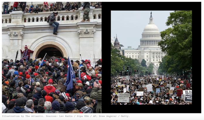 Yet the ensuing riots—and the disorder they appeared to countenance—prefigured a surge of white grievance that still hasn’t subsided. Throughout the summer of 2020, many on the left exalted lawlessness and violence as pardonable offenses, if not political virtues. Within a few months, this impulse had migrated to the right, yielding even worse damage to the liberal order, most notably on January 6, 2021. The mass unrest of the preceding year certainly did not cause the sacking of the Capitol. But that winter siege amounted to an outgrowth of the summer revolt—the rotten fruit of imitation.