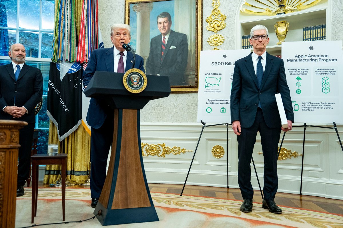 “We’ll be putting a tariff of approximately 100 percent on chips and semiconductors,” Trump said at a White House event where Apple CEO Tim Cook announced plans to boost the company’s investment in the United States by $100 billion.