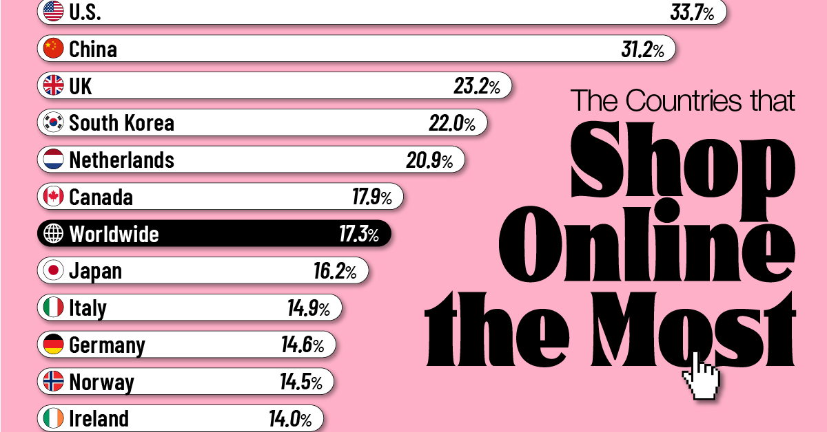 HomeMarkets Markets Ranked: The Countries that Shop Online the Most By news August 9, 2025 0 652 FacebookTwitterPinterestWhatsApp E-commerce has transformed how consumers shop across the globe. This graphic ranks countries by the share of retail purchases made online, offering a …This post was originally published on this site Share FacebookTwitterPinterestWhatsApp Subscribe Login Notify of new follow-up comments new replies to my comments Please login to comment 0 Comments Inline Feedbacks View all comments Stay Connected149,186FansLike396,312FollowersFollow2,680SubscribersSubscribe Latest Articles Markets American soldier arrested over Polymarket wagers tied to Maduro’s capture Markets Why the world’s banks are so worried about Anthropic’s latest AI model Markets I Flagged Every Trade Markets ‘Should’ve Never Sold Her Soul!’ Markets Thursday Thoughts – The Circle Jerk Economy is Back in Full Swing Market News On the Brink of Global Recession Energy Iran Again Tightens Its Grip on Shipping in the Strait of Hormuz Biotech HHS rejects publication of study showing Covid-19 vaccines prevent hospitalizations, ER visits Markets (Plunder) America First: The Grand Strategy of Donald Trump Markets Is Trump heading to a Pyrrhic victory in Iran? Markets Which Way Wednesday – The Physics of Oil Won’t Negotiate Market News Why the US military is stuck using $1 million missiles against Iran’s $20,000 drones AI Unauthorized group has gained access to Anthropic’s exclusive cyber tool Mythos, report claims AI Apple’s John Ternus will run one of the world’s most powerful companies; the job is a minefield Load more