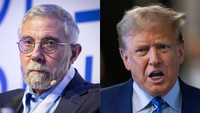 President Donald Trump unleashed on Nobel Prize-winning economist and ex-New York Times columnist Paul Krugman as a “deranged BUM” for articles panning his administration’s tariff regime.