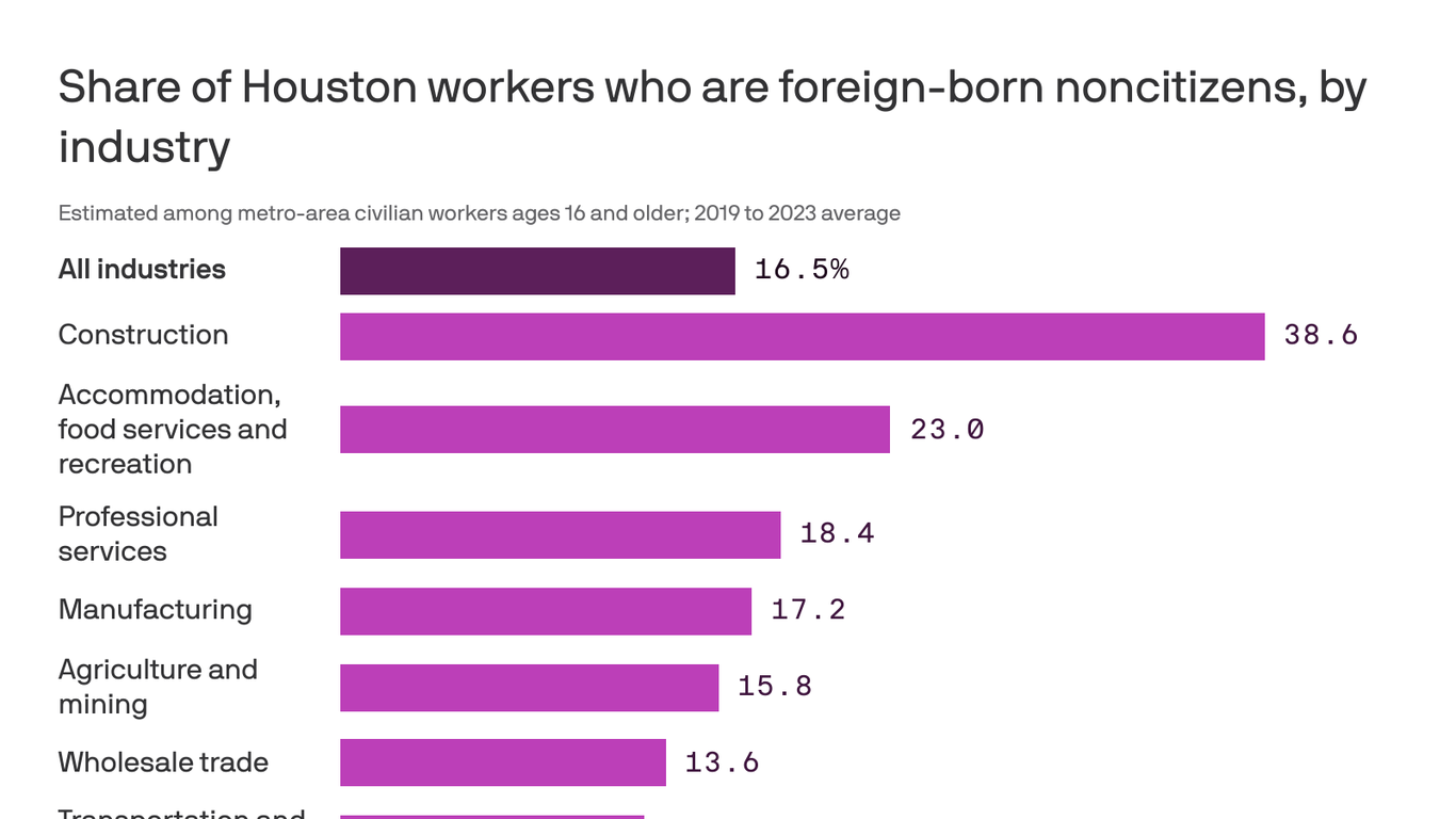 HomeMarkets Markets Houston industries most reliant on foreign-born labor face strain By news August 19, 2025 0 114 FacebookTwitterPinterestWhatsApp The construction and food service/recreation industries have the highest shares of foreign-born noncitizen workers in the Houston area, per Census …This post was originally published on this site Share FacebookTwitterPinterestWhatsApp Subscribe Login Notify of new follow-up comments new replies to my comments Please login to comment 0 Comments Inline Feedbacks View all comments Stay Connected149,190FansLike396,312FollowersFollow2,680SubscribersSubscribe Latest Articles Markets Why the world’s banks are so worried about Anthropic’s latest AI model Markets I Flagged Every Trade Markets Thursday Thoughts – The Circle Jerk Economy is Back in Full Swing Market News On the Brink of Global Recession Energy Iran Again Tightens Its Grip on Shipping in the Strait of Hormuz Biotech HHS rejects publication of study showing Covid-19 vaccines prevent hospitalizations, ER visits Markets (Plunder) America First: The Grand Strategy of Donald Trump Markets Is Trump heading to a Pyrrhic victory in Iran? Markets Which Way Wednesday – The Physics of Oil Won’t Negotiate Market News Why the US military is stuck using $1 million missiles against Iran’s $20,000 drones AI Unauthorized group has gained access to Anthropic’s exclusive cyber tool Mythos, report claims AI Apple’s John Ternus will run one of the world’s most powerful companies; the job is a minefield Energy Trump announces extension of Iran ceasefire until ‘discussion concluded’ Top Trades PhilStockWorld Top Trade Alert – April 21st, 2026 – Synchrony Financial (SYF) Load more