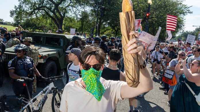 HomeMarkets Markets D.C. Fights Back Against Trump’s Takeover By news August 21, 2025 0 317 FacebookTwitterPinterestWhatsApp Sandwich Solidarity A protestor holds a piece of bread as he walks past the National Guard on Aug. 16, in solidarity with a man who was arrested last …This post was originally published on this site Share FacebookTwitterPinterestWhatsApp Subscribe Login Notify of new follow-up comments new replies to my comments Please login to comment 0 Comments Inline Feedbacks View all comments Stay Connected149,188FansLike396,312FollowersFollow2,680SubscribersSubscribe Latest Articles Markets American soldier arrested over Polymarket wagers tied to Maduro’s capture Markets Why the world’s banks are so worried about Anthropic’s latest AI model Markets I Flagged Every Trade Markets ‘Should’ve Never Sold Her Soul!’ Markets Thursday Thoughts – The Circle Jerk Economy is Back in Full Swing Market News On the Brink of Global Recession Energy Iran Again Tightens Its Grip on Shipping in the Strait of Hormuz Biotech HHS rejects publication of study showing Covid-19 vaccines prevent hospitalizations, ER visits Markets (Plunder) America First: The Grand Strategy of Donald Trump Markets Is Trump heading to a Pyrrhic victory in Iran? Markets Which Way Wednesday – The Physics of Oil Won’t Negotiate Market News Why the US military is stuck using $1 million missiles against Iran’s $20,000 drones AI Unauthorized group has gained access to Anthropic’s exclusive cyber tool Mythos, report claims AI Apple’s John Ternus will run one of the world’s most powerful companies; the job is a minefield Load more