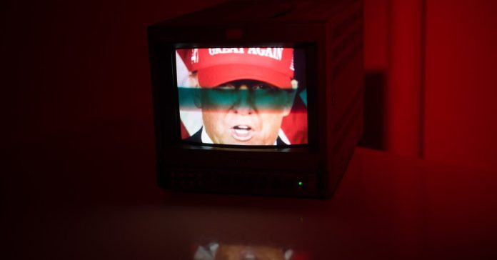 In the background, you see the Department of Labor building. Hanging on its right side is a large American flag; hanging to its left is a huge banner of President Trump with the phrase “American Workers FIRST.” It is the president’s official portrait, supposedly inspired by his mug shot. He’s glowering, less a servant of the public than a stern, unforgiving father. He seems to demand respect and obedience without promising anything in return.