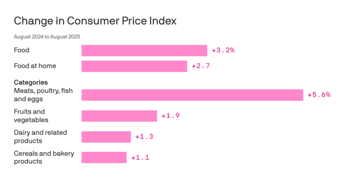 HomeMarkets Markets You’re not crazy: Grocery prices are up in most categories By Ilene September 15, 2025 0 113 FacebookTwitterPinterestWhatsApp Most food categories at grocery stores are now more expensive than they were a year ago, and the Midwest is no different. Why it matters: You’re not …This post was originally published on this site Share FacebookTwitterPinterestWhatsApp Subscribe Login Notify of new follow-up comments new replies to my comments Please login to comment 0 Comments Inline Feedbacks View all comments Stay Connected149,190FansLike396,312FollowersFollow2,680SubscribersSubscribe Latest Articles Markets Why the world’s banks are so worried about Anthropic’s latest AI model Markets I Flagged Every Trade Markets Thursday Thoughts – The Circle Jerk Economy is Back in Full Swing Market News On the Brink of Global Recession Energy Iran Again Tightens Its Grip on Shipping in the Strait of Hormuz Biotech HHS rejects publication of study showing Covid-19 vaccines prevent hospitalizations, ER visits Markets (Plunder) America First: The Grand Strategy of Donald Trump Markets Is Trump heading to a Pyrrhic victory in Iran? Markets Which Way Wednesday – The Physics of Oil Won’t Negotiate Market News Why the US military is stuck using $1 million missiles against Iran’s $20,000 drones AI Unauthorized group has gained access to Anthropic’s exclusive cyber tool Mythos, report claims AI Apple’s John Ternus will run one of the world’s most powerful companies; the job is a minefield Energy Trump announces extension of Iran ceasefire until ‘discussion concluded’ Top Trades PhilStockWorld Top Trade Alert – April 21st, 2026 – Synchrony Financial (SYF) Load more