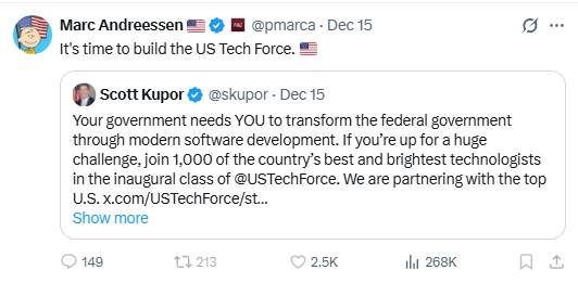 HomeMarkets Markets Trump Admin Reinvents US Digital Services Program After Elon Musk Fired All Their Actual Tech Experts By news December 23, 2025 0 106 FacebookTwitterPinterestWhatsApp Here’s a fun game the Trump administration keeps playing: destroy a successful government program, wait a few months, then breathlessly announce …This post was originally published on this site Share FacebookTwitterPinterestWhatsApp Subscribe Login Notify of new follow-up comments new replies to my comments Please login to comment 0 Comments Inline Feedbacks View all comments Stay Connected149,190FansLike396,312FollowersFollow2,680SubscribersSubscribe Latest Articles Markets Why the world’s banks are so worried about Anthropic’s latest AI model Markets I Flagged Every Trade Markets Thursday Thoughts – The Circle Jerk Economy is Back in Full Swing Market News On the Brink of Global Recession Energy Iran Again Tightens Its Grip on Shipping in the Strait of Hormuz Biotech HHS rejects publication of study showing Covid-19 vaccines prevent hospitalizations, ER visits Markets (Plunder) America First: The Grand Strategy of Donald Trump Markets Is Trump heading to a Pyrrhic victory in Iran? Markets Which Way Wednesday – The Physics of Oil Won’t Negotiate Market News Why the US military is stuck using $1 million missiles against Iran’s $20,000 drones AI Unauthorized group has gained access to Anthropic’s exclusive cyber tool Mythos, report claims AI Apple’s John Ternus will run one of the world’s most powerful companies; the job is a minefield Energy Trump announces extension of Iran ceasefire until ‘discussion concluded’ Top Trades PhilStockWorld Top Trade Alert – April 21st, 2026 – Synchrony Financial (SYF) Load more