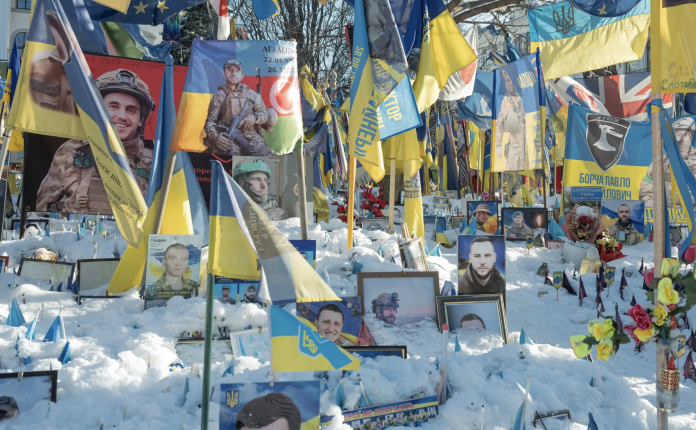 With a citywide curfew in effect, parties in Kyiv have long moved to daytime hours, and with much of the city lacking light and heat, it makes sense to gather outdoors. So adults of different ages, dressed in puffy coats of every color, baggy designer sweatpants and chunky Uggs, had gathered, though there wasn’t much dancing, perhaps because the battery-powered speakers weren’t quite strong enough to blast music through the open air. There was, however, much mingling, some barbecuing, a lot of mulled wine and at least one book burning, of a Russian-language young-adult novel. Kids in snow pants slid down the steep, iced-over bank of the river; when they skidded across the ice, they knocked over a few adults.