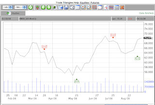 (1) My coming of age in the use of charts to trade for a living came as a student of a man named Vincent Micheal. He runs a service called, "StockMarketVideo.Com". He has become increasingly bearish, based on his reading of the charts, for the past six weeks. Tonight, Wednesday, he basically said run for the hills, something bad, really bad, is about to happen to our equity markets. I have never heard Vincent in this kind of panic mode before. I am taking his warning very seriously.