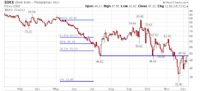 We were watching the banking index closely last Friday. One clue the market was looking to rally was strength in banks. It seems unlikely we can have any kind of sustained rally without cooperation from banks.