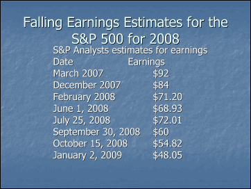 What does make sense is to discuss earnings estimates. Here are two charts from a recent report by John Mauldin entitled 2008: Annus Horribilis, RIP.