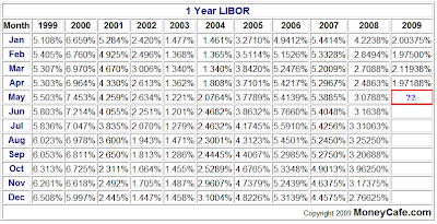 Across the board, those in 3-year ARM rates that have recently reset or are about to reset, will do so at a much lower rate unless there is a floor. Moreover, with the specific exception of 1-Year LIBOR based loans, there will also be a reduction in 5-Year ARM rates when those loans reset. Looking ahead just one month, even 5-Year ARMs tied to 1-Year LIBOR are likely to reset lower.