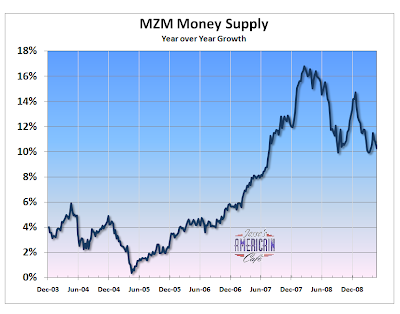 Here are some examples of money supply growth in the US. If you read our Primer you will know that MZM is by far the most important now that M3 is no longer reliably available.