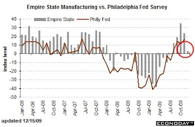 Econoday: "The New York Fed conducts this monthly survey of manufacturers in New York State. Participants from across the state represent a variety of industries. On the first of each month, the same pool of roughly 175 manufacturing executives (usually the CEO or the president) is sent a questionnaire to report the change in an assortment of indicators from the previous month. Respondents also give their views about the likely direction of these same indicators six months ahead. Why Investors Care"