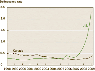 The Canadians were probably just lucky, according to the Fed, except they actually did things to stem the growth of off-balance-sheet securitization and tightened lending standards earlier on while the US Fed was cheerleading banking speculation and the growing housing bubble even to the point of its collapse.
