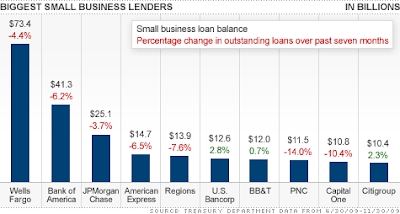 10 of the 22 banks have cut their small business balances every single month since April. That list includes firms such as JPMorgan (JPM) that are now posting monster profits.