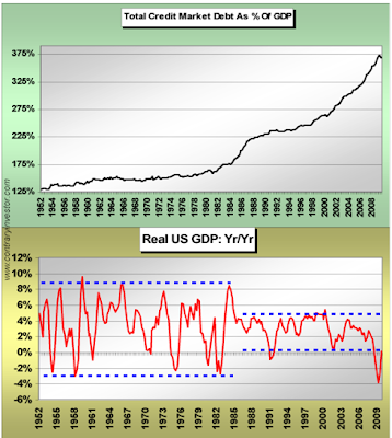 The entire article is worth a read, but please consider a snip on the law of diminishing returns of credit expansion and the accompanying increase in economic volatility.