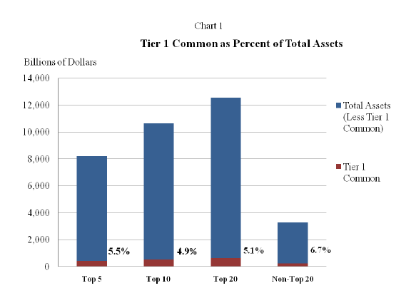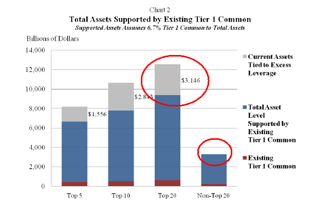 If the top 20 firms held the same equity capital levels as other smaller banking institutions, they would require $210 billion in new equity or reduced assets of over $3 trillion, or some combination of both.