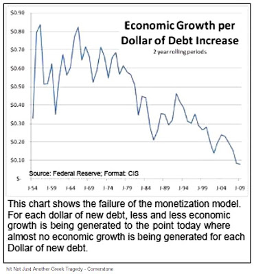 The return on each new dollar of US debt is plummeting to new lows according to figures from the Federal Reserve.